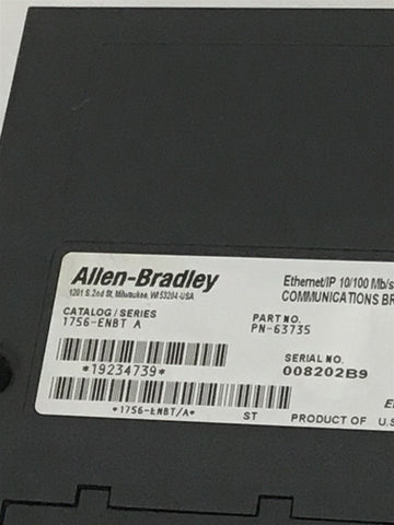 Allen-Bradley 1756-ENBT Ser. A Ethernet IP Module/Communications Return Policy Returns accepted within 30 days. Items sold as is cannot be returned, unless description is in error. Buyer pays return freight. Shipping Policy We ship almost all items with 1 business day of cleared payment. We ship USPS and UPS. We can ship on your account. If you will be shipping freight, please be sure to provide all delivery contact information including a phone number. We will need to know if you have a fork lift or dock.