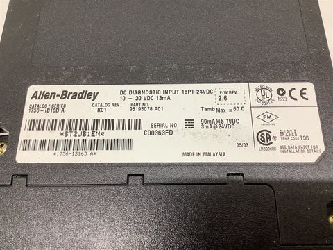 Allen-Bradley 1756-IB16D A DC Diagnostic Input 16 PT 24 VDC 10-30 VDC 13 mA