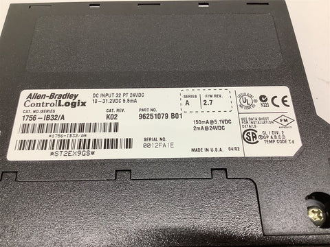 Allen-Bradley 1756-IB32/A Control Logix DC Input 32 PT 24 VDC Return Policy Returns accepted within 30 days. Items sold as is cannot be returned, unless description is in error. Buyer pays return freight. Shipping Policy We ship almost all items with 1 business day of cleared payment. We ship USPS and UPS. We can ship on your account. If you will be shipping freight, please be sure to provide all delivery contact information including a phone number. We will need to know if you have a fork lift or dock.
