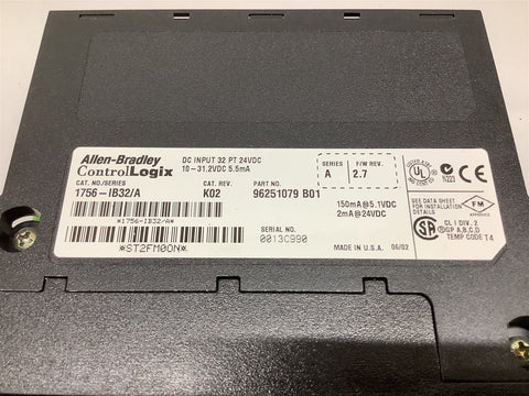 Allen-Bradley 1756-IB32/A DC Input 32 PT Return Policy Returns accepted within 30 days. Items sold as is cannot be returned, unless description is in error. Buyer pays return freight. Shipping Policy We ship almost all items with 1 business day of cleared payment. We ship USPS and UPS. We can ship on your account. If you will be shipping freight, please be sure to provide all delivery contact information including a phone number. We will need to know if you have a fork lift or dock.
