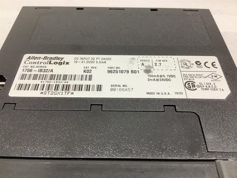 Allen-Bradley 1756-IB32/A DC Input 32 PT 24 Vdc Return Policy Returns accepted within 30 days. Items sold as is cannot be returned, unless description is in error. Buyer pays return freight. Shipping Policy We ship almost all items with 1 business day of cleared payment. We ship USPS and UPS. We can ship on your account. If you will be shipping freight, please be sure to provide all delivery contact information including a phone number. We will need to know if you have a fork lift or dock.
