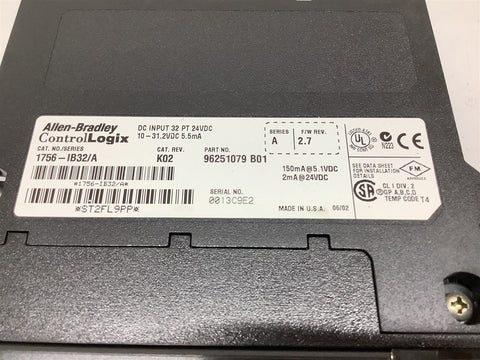 Allen-Bradley 1756-IB32/A DC Input 32 PT 24 Vdc Return Policy Returns accepted within 30 days. Items sold as is cannot be returned, unless description is in error. Buyer pays return freight. Shipping Policy We ship almost all items with 1 business day of cleared payment. We ship USPS and UPS. We can ship on your account. If you will be shipping freight, please be sure to provide all delivery contact information including a phone number. We will need to know if you have a fork lift or dock.