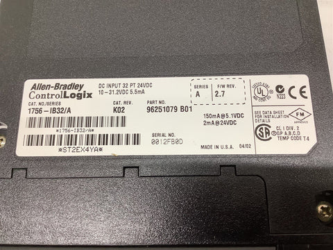 Allen-Bradley 1756-IB32/A DC Input Module 32 PT Return Policy Returns accepted within 30 days. Items sold as is cannot be returned, unless description is in error. Buyer pays return freight. Shipping Policy We ship almost all items with 1 business day of cleared payment. We ship USPS and UPS. We can ship on your account. If you will be shipping freight, please be sure to provide all delivery contact information including a phone number. We will need to know if you have a fork lift or dock.