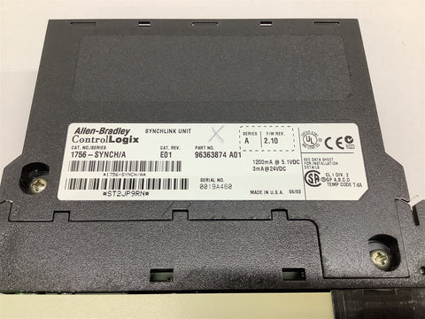 Allen-Bradley 1756-SYNCH/A Synchlink Unit Return Policy Returns accepted within 30 days. Items sold as is cannot be returned, unless description is in error. Buyer pays return freight. Shipping Policy We ship almost all items with 1 business day of cleared payment. We ship USPS and UPS. We can ship on your account. If you will be shipping freight, please be sure to provide all delivery contact information including a phone number. We will need to know if you have a fork lift or dock.
