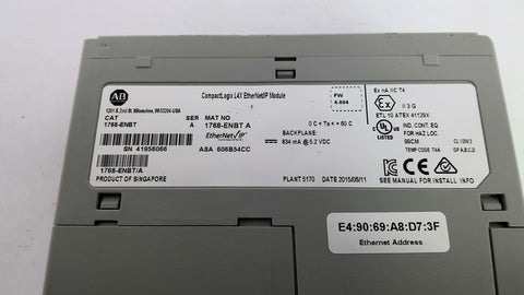 Allen Bradley 1768-ENBT Module 5.2VDC Used---Good Visual Condition-11/25---APCC 168022---SS315---T-28-5-4---2.00