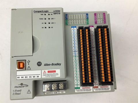 Allen Bradley 1769-L27ERM-QBFC1B Ser A Compact Logix Controller Return Policy Returns accepted within 30 days. Items sold as is cannot be returned, unless description is in error. Buyer pays return freight. Shipping Policy We ship almost all items with 1 business day of cleared payment. We ship USPS and UPS. We can ship on your account. If you will be shipping freight, please be sure to provide all delivery contact information including a phone number. We will need to know if you have a fork lift or dock.