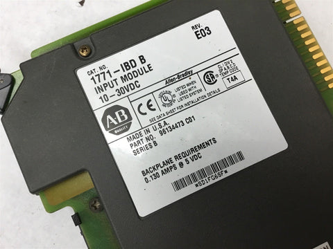 ALLEN-BRADLEY 1771-IBD INPUT MODULE 10-30 VDC USED---GOOD VISUAL CONDITION----7/18/067493---SS171---G-1-3-3-A-4-----5.00