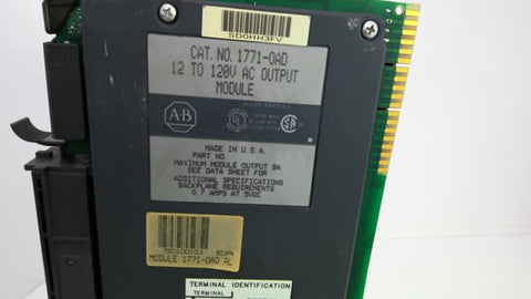 Allen Bradley 1771-OAD AC Output Module 120VUsed---Good Visual Condition-9/25---APCC 167465---SS314---T-29-3-4---4.00