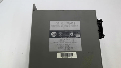 Allen Bradley 1771-P7 B Power Supply 120/220V Return Policy Returns accepted within 30 days. Items sold as is cannot be returned, unless description is in error. Buyer pays return freight. Shipping Policy We ship almost all items with 1 business day of cleared payment. We ship USPS and UPS. We can ship on your account. If you will be shipping freight, please be sure to provide all delivery contact information including a phone number. We will need to know if you have a fork lift or dock.