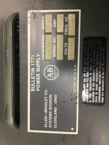 Allen Bradley 1771-PA Power Supply Series B 120/220 Volt Return Policy Returns accepted within 30 days. Items sold as is cannot be returned, unless description is in error. Buyer pays return freight. Shipping Policy We ship almost all items with 1 business day of cleared payment. We ship USPS and UPS. We can ship on your account. If you will be shipping freight, please be sure to provide all delivery contact information including a phone number. We will need to know if you have a fork lift or dock.