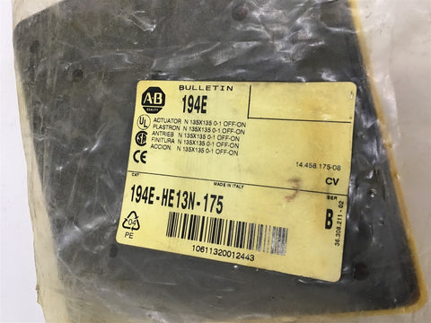 Allen-Bradley 194E-HE13N-175 Actuator Handle Return Policy Returns accepted within 30 days. Items sold as is cannot be returned, unless description is in error. Buyer pays return freight. Shipping Policy We ship almost all items with 1 business day of cleared payment. We ship USPS and UPS. We can ship on your account. If you will be shipping freight, please be sure to provide all delivery contact information including a phone number. We will need to know if you have a fork lift or dock.