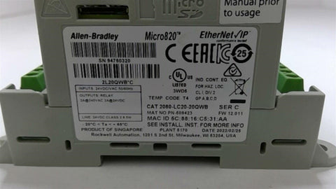 Allen Bradley 2080-LC20-20QEB Micro820 ControllerNew Surplus--Not In Box--5/25--JLVCC 163159---SS298-SK-137-B---3.00