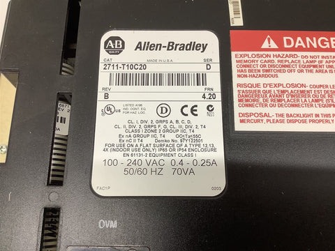 Allen-Bradley 2711-T10C20 Ser D PanelView 1000 100-240 VAC 0.4-0.25 A 50/60 Hz