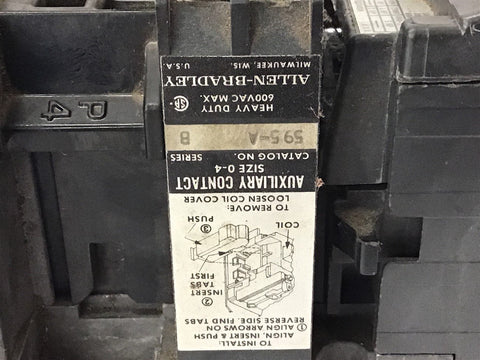 Allen-Bradley 509-A0D Size 0 Starter 460V @ 5 HP 115-120 Volt Coil Return Policy Returns accepted within 30 days. Items sold as is cannot be returned, unless description is in error. Buyer pays return freight. Shipping Policy We ship almost all items with 1 business day of cleared payment. We ship USPS and UPS. We can ship on your account. If you will be shipping freight, please be sure to provide all delivery contact information including a phone number. We will need to know if you have a fork lift or dock.