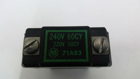 Allen-Bradley 71A83 Coil 240 Volt 60 HZUsed--Good Visual Condition---6/24/RVCC 153521---SS283-T-16-6-2-C---1.00