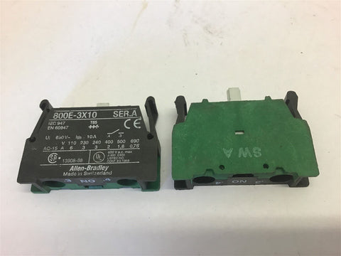 Allen Bradley 800E-3X10 Contact Block --Lot of 2 Return Policy Returns accepted within 30 days. Items sold as is cannot be returned, unless description is in error. Buyer pays return freight. Shipping Policy We ship almost all items with 1 business day of cleared payment. We ship USPS and UPS. We can ship on your account. If you will be shipping freight, please be sure to provide all delivery contact information including a phone number. We will need to know if you have a fork lift or dock.