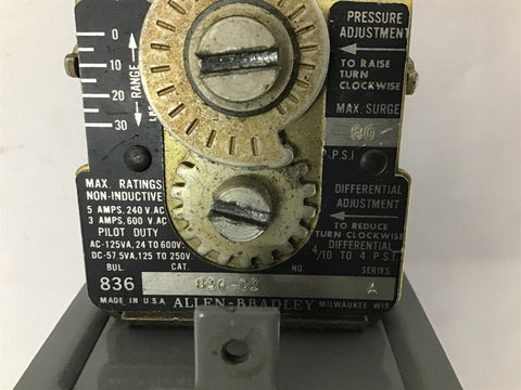 Allen-Bradley 836-C3 Pressure Switch Return Policy Returns accepted within 30 days. Items sold as is cannot be returned, unless description is in error. Buyer pays return freight. Shipping Policy We ship almost all items with 1 business day of cleared payment. We ship USPS and UPS. We can ship on your account. If you will be shipping freight, please be sure to provide all delivery contact information including a phone number. We will need to know if you have a fork lift or dock.