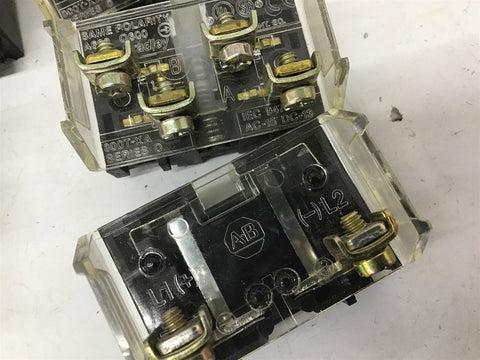 Allen Bradley Contact Blocks 40171-002-01 L1L2 800T-XA Lot Of 8 Return Policy Returns accepted within 30 days. Items sold as is cannot be returned, unless description is in error. Buyer pays return freight. Shipping Policy We ship almost all items with 1 business day of cleared payment. We ship USPS and UPS. We can ship on your account. If you will be shipping freight, please be sure to provide all delivery contact information including a phone number. We will need to know if you have a fork lift or dock.