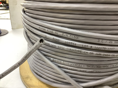 Alpha 5153C 1000' C/M 3/C 20AWG Return Policy Returns accepted within 30 days. Items sold as is cannot be returned, unless description is in error. Buyer pays return freight. Shipping Policy We ship almost all items with 1 business day of cleared payment. We ship USPS and UPS. We can ship on your account. If you will be shipping freight, please be sure to provide all delivery contact information including a phone number. We will need to know if you have a fork lift or dock.