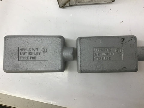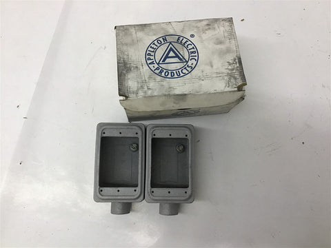 Appleton Electric APP FS-1-50 Single Gang 1/2" Device Box Lot Of 2 Return Policy Returns accepted within 30 days. Items sold as is cannot be returned, unless description is in error. Buyer pays return freight. Shipping Policy We ship almost all items with 1 business day of cleared payment. We ship USPS and UPS. We can ship on your account. If you will be shipping freight, please be sure to provide all delivery contact information including a phone number. We will need to know if you have a fork lift or dock.