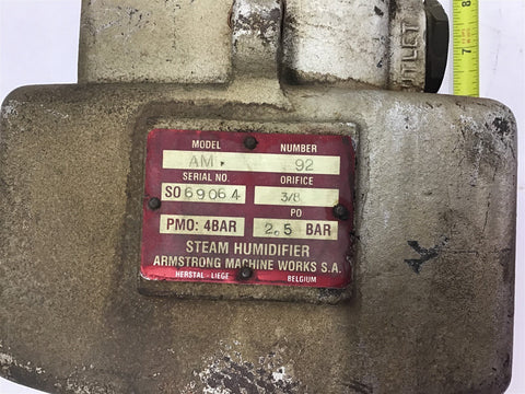 Armstrong Machine Works Steam Humidifier M-AM N0.92 SN.69064 Orifice Return Policy Returns accepted within 30 days. Items sold as is cannot be returned, unless description is in error. Buyer pays return freight. Shipping Policy We ship almost all items with 1 business day of cleared payment. We ship USPS and UPS. We can ship on your account. If you will be shipping freight, please be sure to provide all delivery contact information including a phone number. We will need to know if you have a fork lift or dock.
