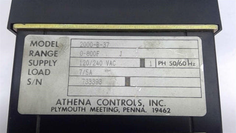 Athena Controls 2000-B-37 Temperature ControlUsed---Good Visual Condition---1/24/JLVCC 148227---SS283-T-19-0-6---3.00