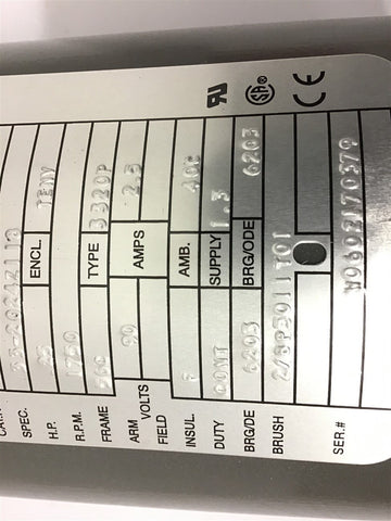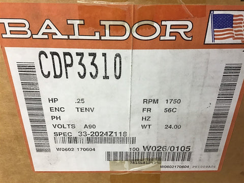 Baldor CDP3310 .25 HP DC Motor 90 Volts 1750 Rpm 56C Frame Return Policy Returns accepted within 30 days. Items sold as is cannot be returned, unless description is in error. Buyer pays return freight. Shipping Policy We ship almost all items with 1 business day of cleared payment. We ship USPS and UPS. We can ship on your account. If you will be shipping freight, please be sure to provide all delivery contact information including a phone number. We will need to know if you have a fork lift or dock.