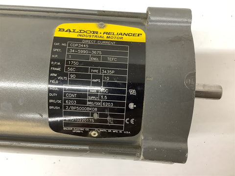 Baldor CDP3445 DC Motor 90V 1750RPM 1HP 56CFR 10AMP ENCL:TEFC Return Policy Returns accepted within 30 days. Items sold as is cannot be returned, unless description is in error. Buyer pays return freight. Shipping Policy We ship almost all items with 1 business day of cleared payment. We ship USPS and UPS. We can ship on your account. If you will be shipping freight, please be sure to provide all delivery contact information including a phone number. We will need to know if you have a fork lift or dock.
