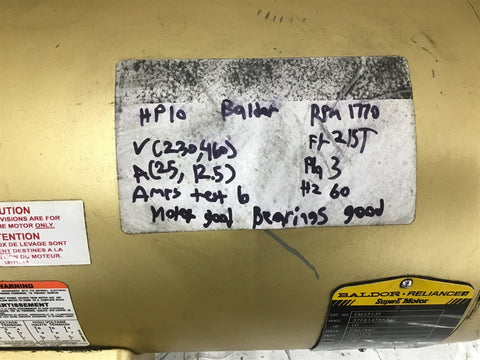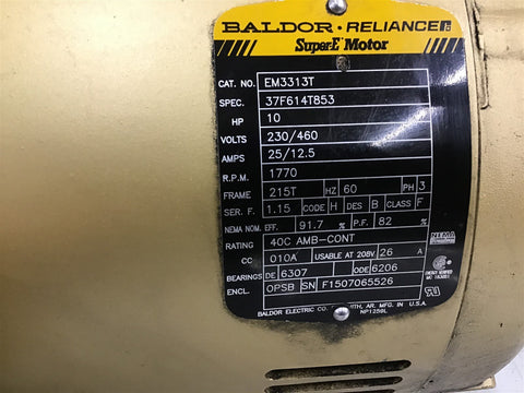 Baldor Reliance EM3313T 10HP AC Motor Return Policy Returns accepted within 30 days. Items sold as is cannot be returned, unless description is in error. Buyer pays return freight. Shipping Policy We ship almost all items with 1 business day of cleared payment. We ship USPS and UPS. We can ship on your account. If you will be shipping freight, please be sure to provide all delivery contact information including a phone number. We will need to know if you have a fork lift or dock.