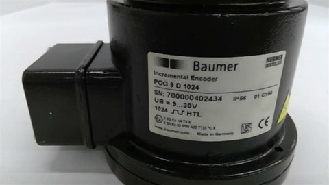 Baumer POG9D1024 Incremental Encoder Return Policy Returns accepted within 30 days. Items sold as is cannot be returned, unless description is in error. Buyer pays return freight. Shipping Policy We ship almost all items with 1 business day of cleared payment. We ship USPS and UPS. We can ship on your account. If you will be shipping freight, please be sure to provide all delivery contact information including a phone number. We will need to know if you have a fork lift or dock.