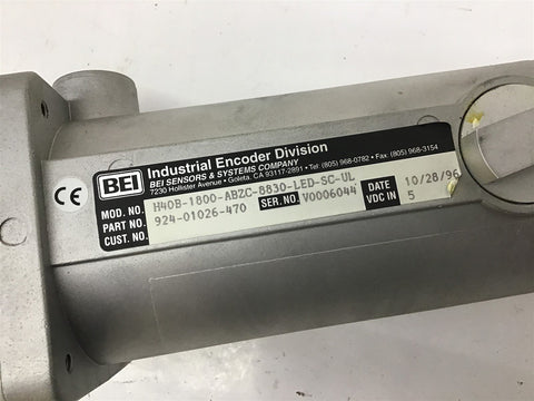 BEI H40B-1800-ABZC-8830-LED-SC-UL 5 VDC Encoder Return Policy Returns accepted within 30 days. Items sold as is cannot be returned, unless description is in error. Buyer pays return freight. Shipping Policy We ship almost all items with 1 business day of cleared payment. We ship USPS and UPS. We can ship on your account. If you will be shipping freight, please be sure to provide all delivery contact information including a phone number. We will need to know if you have a fork lift or dock.