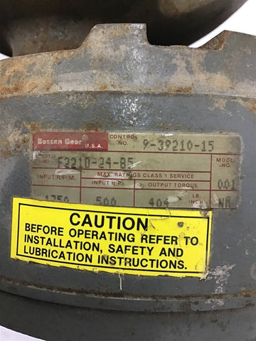 Boston Gear F221D-24-B5 Gear Reducer 24:1 Ratio 0.500 Input HP Return Policy Returns accepted within 30 days. Items sold as is cannot be returned, unless description is in error. Buyer pays return freight. Shipping Policy We ship almost all items with 1 business day of cleared payment. We ship USPS and UPS. We can ship on your account. If you will be shipping freight, please be sure to provide all delivery contact information including a phone number. We will need to know if you have a fork lift or dock.