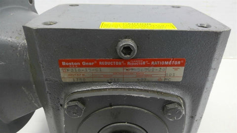 Boston Gear F318-15-G1 Right Angle Gear Reducer 15:1 Ratio Input HP .910 Return Policy Returns accepted within 30 days. Items sold as is cannot be returned, unless description is in error. Buyer pays return freight. Shipping Policy We ship almost all items with 1 business day of cleared payment. We ship USPS and UPS. We can ship on your account. If you will be shipping freight, please be sure to provide all delivery contact information including a phone number. We will need to know if you have a fork lift or dock.