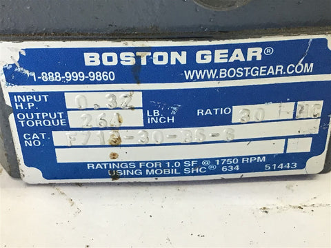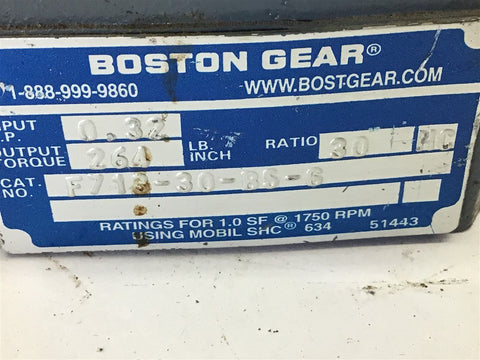 Boston Gear F713-30-B5-6 Gear Reducer 30:1 Ratio 0.32 Input HP 264 Torque