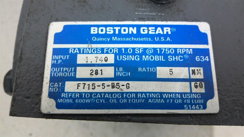Boston Gear F715-5-B5-G 5:1 Ratio Left Angle Gear Reducer