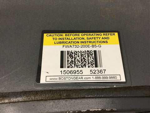 Boston Gear FWA732-200E-B5-G Double Reduction Gear Reducer 200:1 Ratio 0.81 HP Return Policy Returns accepted within 30 days. Items sold as is cannot be returned, unless description is in error. Buyer pays return freight. Shipping Policy We ship almost all items with 1 business day of cleared payment. We ship USPS and UPS. We can ship on your account. If you will be shipping freight, please be sure to provide all delivery contact information including a phone number. We will need to know if you have a fork lift or dock.