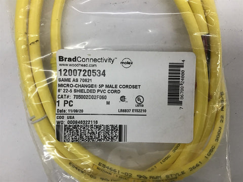 Brad Connectivity Woodhead 705002D02F060 Micro-Change 5P Male Cordset 6'