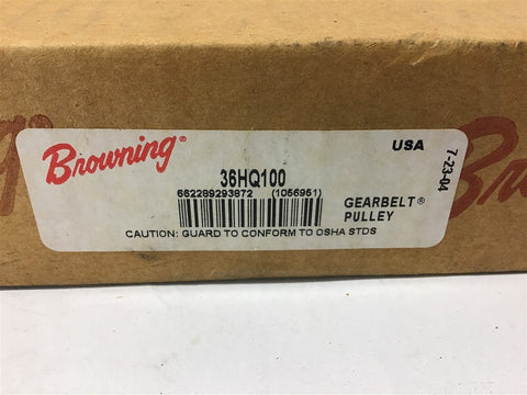 Browning 36HQ100 Timing Belt Pulley Return Policy Returns accepted within 30 days. Items sold as is cannot be returned, unless description is in error. Buyer pays return freight. Shipping Policy We ship almost all items with 1 business day of cleared payment. We ship USPS and UPS. We can ship on your account. If you will be shipping freight, please be sure to provide all delivery contact information including a phone number. We will need to know if you have a fork lift or dock.