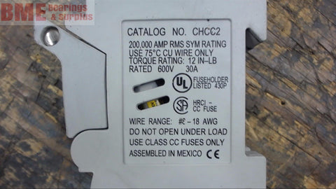 Buss Chcc2 2 Pole 30 Amp, 600 Volt Fuse BlockUSED---GOOD VISUAL CONDITION----101/17/JC038167---SSTK---H-2-10-2------3.00
