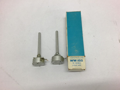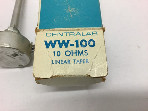 Centralab WW-100 Potentiometer 10 OHMS Linear Taper Lot of 2 Return Policy Returns accepted within 30 days. Items sold as is cannot be returned, unless description is in error. Buyer pays return freight. Shipping Policy We ship almost all items with 1 business day of cleared payment. We ship USPS and UPS. We can ship on your account. If you will be shipping freight, please be sure to provide all delivery contact information including a phone number. We will need to know if you have a fork lift or dock.