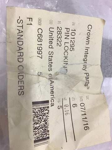 Crown Integrity Pin Locking 101295 Return Policy Returns accepted within 30 days. Items sold as is cannot be returned, unless description is in error. Buyer pays return freight. Shipping Policy We ship almost all items with 1 business day of cleared payment. We ship USPS and UPS. We can ship on your account. If you will be shipping freight, please be sure to provide all delivery contact information including a phone number. We will need to know if you have a fork lift or dock.