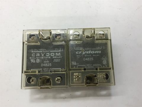 CRYDOM D4825 SOLID-STATE RELAY 3-32 V INPUT 280/480 V 25 AMP OUT, LOT OF 2