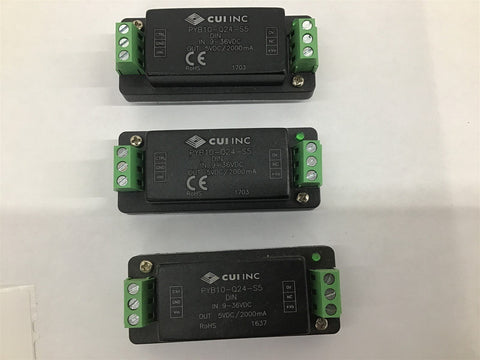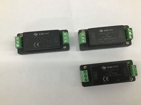 CUI Inc PYB10-Q24-S5 DIN 9-36 VDC Lot of 3 Return Policy Returns accepted within 30 days. Items sold as is cannot be returned, unless description is in error. Buyer pays return freight. Shipping Policy We ship almost all items with 1 business day of cleared payment. We ship USPS and UPS. We can ship on your account. If you will be shipping freight, please be sure to provide all delivery contact information including a phone number. We will need to know if you have a fork lift or dock.