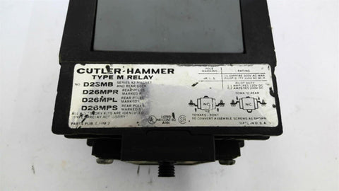 Cutler-Hammer D23MB Type M Relay Return Policy Returns accepted within 30 days. Items sold as is cannot be returned, unless description is in error. Buyer pays return freight. Shipping Policy We ship almost all items with 1 business day of cleared payment. We ship USPS and UPS. We can ship on your account. If you will be shipping freight, please be sure to provide all delivery contact information including a phone number. We will need to know if you have a fork lift or dock.