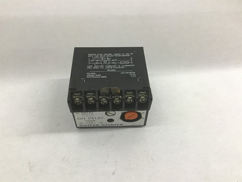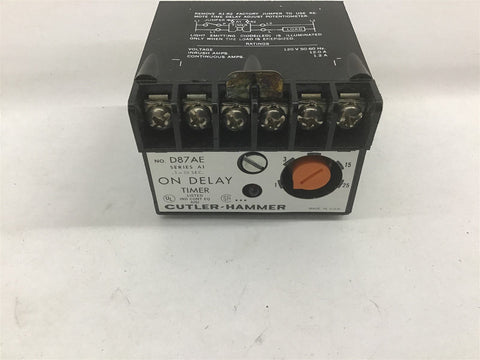 Cutler Hammer D87AE On Delay Timer 120V 50/60HZ Return Policy Returns accepted within 30 days. Items sold as is cannot be returned, unless description is in error. Buyer pays return freight. Shipping Policy We ship almost all items with 1 business day of cleared payment. We ship USPS and UPS. We can ship on your account. If you will be shipping freight, please be sure to provide all delivery contact information including a phone number. We will need to know if you have a fork lift or dock.