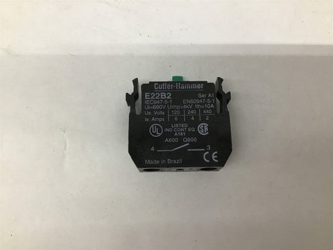 Cutler Hammer E22B2 Ser A1 IEC947-5-1 Lot Of 4 Return Policy Returns accepted within 30 days. Items sold as is cannot be returned, unless description is in error. Buyer pays return freight. Shipping Policy We ship almost all items with 1 business day of cleared payment. We ship USPS and UPS. We can ship on your account. If you will be shipping freight, please be sure to provide all delivery contact information including a phone number. We will need to know if you have a fork lift or dock.