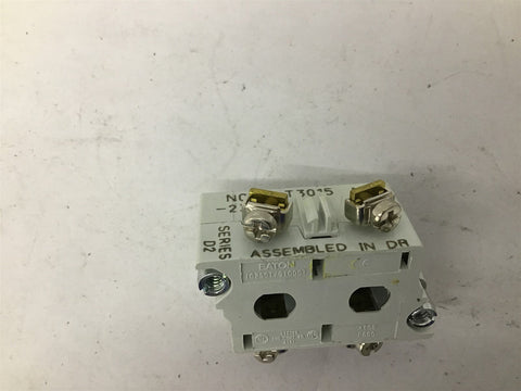Cutler Hammer Eaton 10250T2 Contact Block 2NO Ser D2 T3015 Return Policy Returns accepted within 30 days. Items sold as is cannot be returned, unless description is in error. Buyer pays return freight. Shipping Policy We ship almost all items with 1 business day of cleared payment. We ship USPS and UPS. We can ship on your account. If you will be shipping freight, please be sure to provide all delivery contact information including a phone number. We will need to know if you have a fork lift or dock.