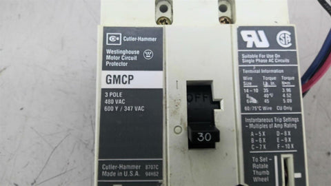 Cutler Hammer GMCP 3P 480V Circuit Breaker 30 Amp Used---Good Visual Condition-1/25/BAPCC 158816---SS294 SK-118-B---6.00