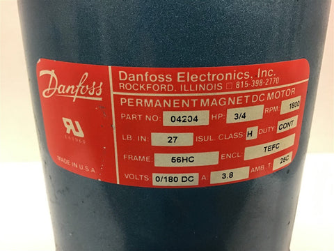 Danfoss 04204 Permanent Magnet DC Motor 3/4HP 1800RPM 56HC 0/180 DC Volts TEFC Return Policy Returns accepted within 30 days. Items sold as is cannot be returned, unless description is in error. Buyer pays return freight. Shipping Policy We ship almost all items with 1 business day of cleared payment. We ship USPS and UPS. We can ship on your account. If you will be shipping freight, please be sure to provide all delivery contact information including a phone number. We will need to know if you have a fork lift or dock.