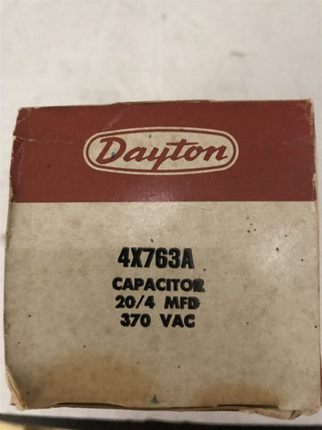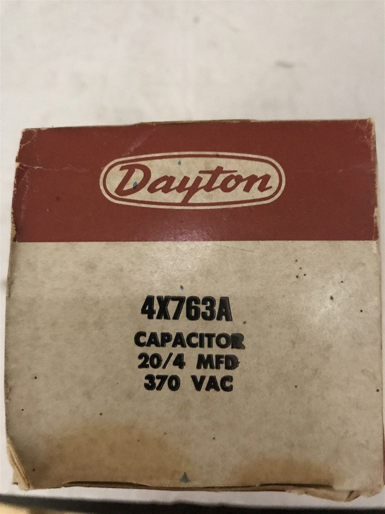 DAYTON 4X763A 20-4MFD 370 VAC 50-60HZ NEW SURPLUS--OPENED FACTORY BOX----12/18/KSGW 058143---SS183---R-2-1-4---1.00